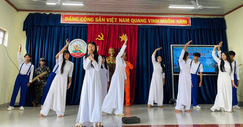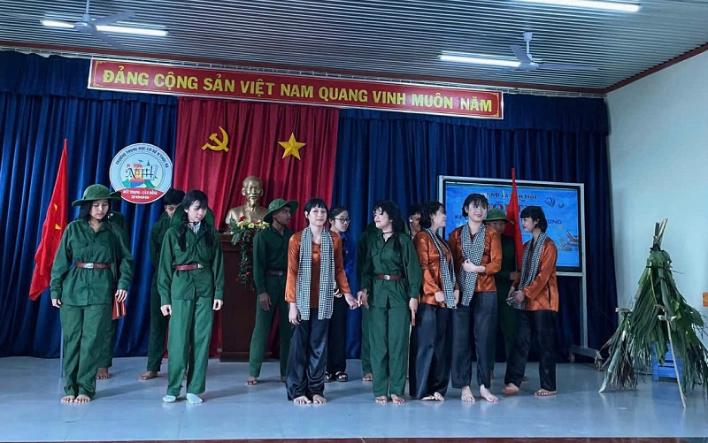 Đặc biệt, trong số các tiết mục dự thi, câu chuyện “Mẹ Suốt” do lớp 7A4 thể hiện đã để lại nhiều ấn tượng sâu sắc trong lòng người nghe. Với giọng kể truyền cảm của em Hà Anh, câu chuyện đã tái hiện sinh động hình ảnh người mẹ anh hùng giữa mưa bom bão đạn, giàu đức hy sinh và lòng yêu nước. Phần thể hiện mộc mạc nhưng đầy cảm xúc đã chạm đến trái tim của thầy cô và học sinh, góp phần làm nổi bật giá trị nhân văn, tinh thần yêu quê hương, đất nước và truyền thống cách mạng của dân tộc.