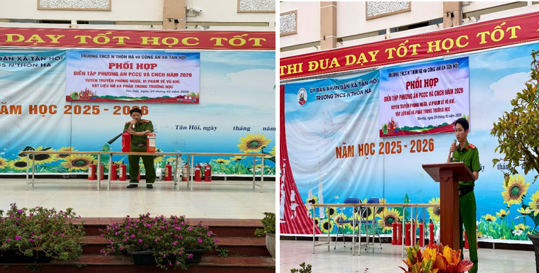 Bước vào những tháng đầu năm 2026, bối cảnh Tây Nguyên đang ở cao điểm mùa khô hanh, tiềm ẩn nguy cơ cháy nổ cao, đồng thời học sinh và nhân dân chuẩn bị đón Tết Nguyên đán Bính Ngọ. Nhận thức rõ tầm quan trọng của việc chủ động phòng ngừa, ngay từ những ngày đầu năm, Ban Giám hiệu Trường THCS N’Thôn Hạ và Công an xã Tân Hội đã thống nhất kế hoạch phối hợp tổ chức các hoạt động thiết thực. Trọng tâm là diễn tập phương án Phòng cháy chữa cháy và Cứu nạn cứu hộ (PCCC&CNCH), cùng đợt tuyên truyền sâu rộng về phòng, chống việc tàng trữ, buôn bán, sử dụng vũ khí, vật liệu nổ, đặc biệt là pháo nổ trong dịp Tết. Các hoạt động này đã được triển khai nghiêm túc vào chiều ngày 29/01/2026.