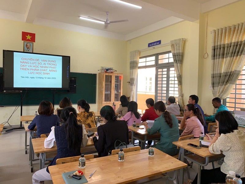 Chiều ngày 12/12/2025, Tổ Khoa học Tự nhiên – Trường THCS N’Thôn Hạ đã tổ chức chuyên đề cấp trường với nội dung “Vận dụng năng lực số, trí tuệ nhân tạo (AI) trong dạy và học nhằm phát triển phẩm chất, năng lực học sinh”.
