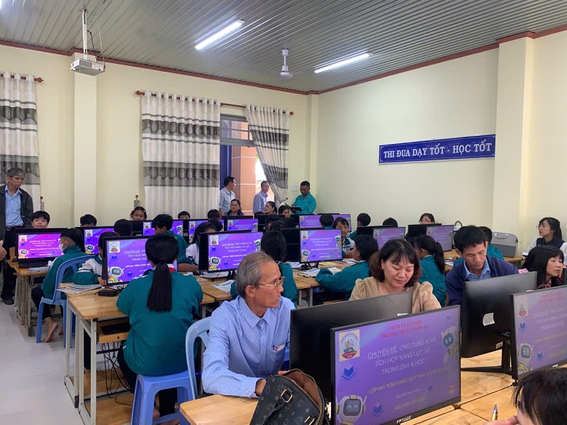Qua hoạt động, giáo viên được trao đổi, chia sẻ kinh nghiệm trong việc khai thác công cụ số, thiết kế bài giảng ứng dụng AI và tăng cường tương tác cho học sinh.