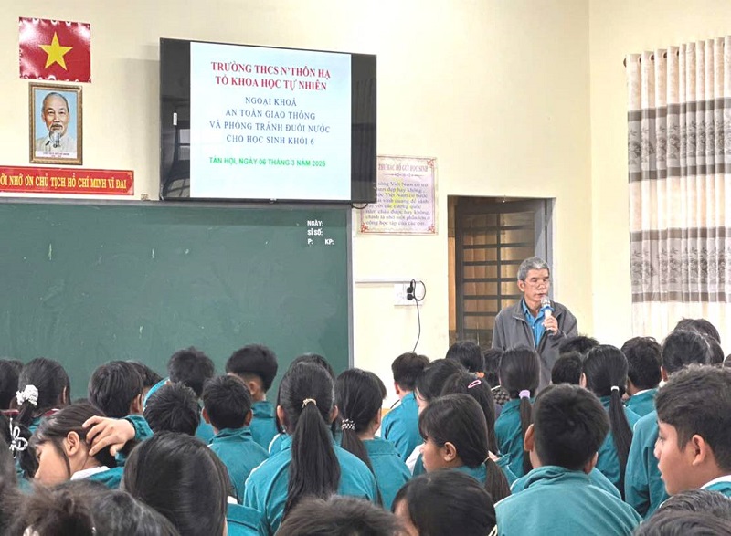 Theo kế hoạch của nhà trường THCS N’Thôn Hạ, chiều ngày 06 tháng 03 năm 2026, tổ Khoa học tự nhiên đã tổ chức thành công hoạt động ngoại khoá cho các em học sinh khối 6 với chủ để “Giáo dục an toàn giao thông, phòng tránh đuối nước”. Buổi ngoại khóa được tổ chức sinh động và thu hút được học sinh lớp 6 đến tham dự.