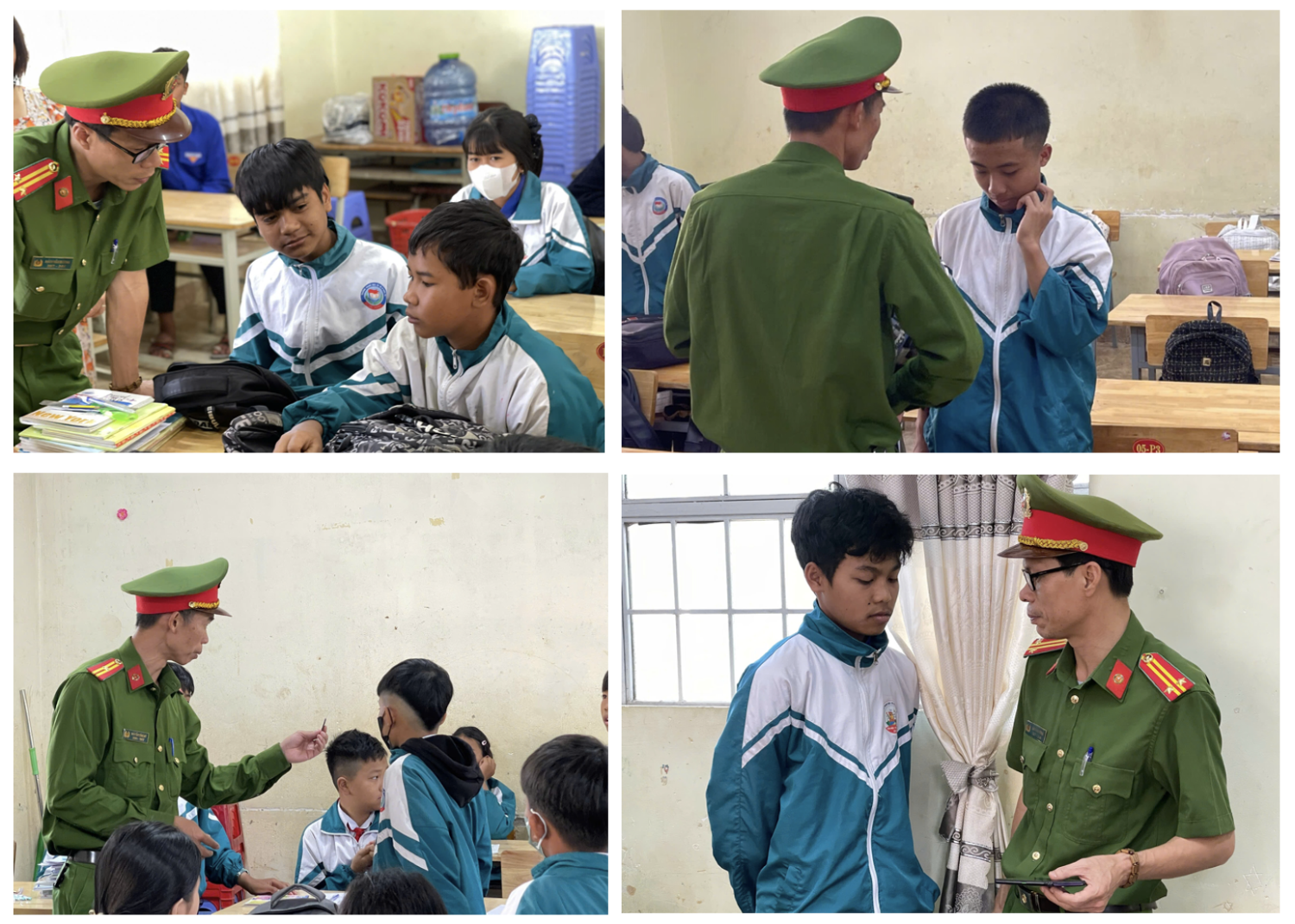 Tại buổi tuyên truyền, các đồng chí Thiếu tá Nguyễn Công Mỹ và Trung tá Bạch Văn Dương – cán bộ Công an xã – đã mang đến cho thầy cô và học sinh nhiều nội dung quan trọng, thiết thực, phù hợp với điều kiện thực tế của nhà trường.
