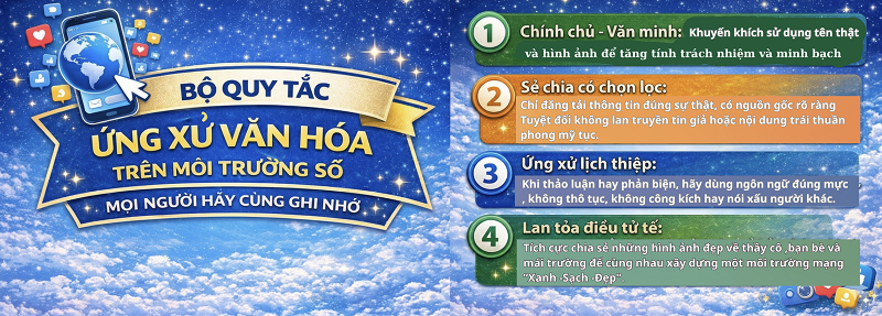 - Sử dụng tài khoản chính chủ với thông tin rõ ràng, khuyến khích học sinh sử dụng tên thật nhằm nâng cao tính minh bạch- văn minh- trách nhiệm trong quá trình tham gia các hoạt động trực tuyến.