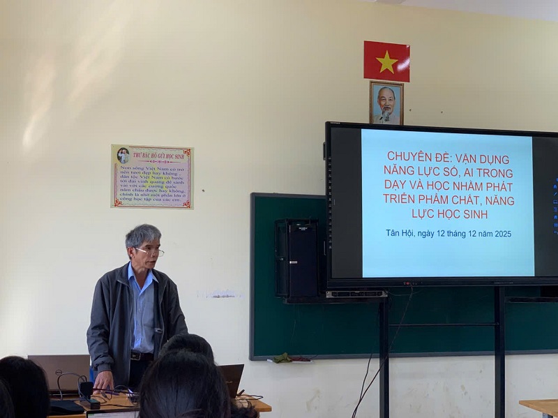 Chiều ngày 12/12/2025, Tổ Khoa học Tự nhiên – Trường THCS N’Thôn Hạ đã tổ chức chuyên đề cấp trường với nội dung “Vận dụng năng lực số, trí tuệ nhân tạo (AI) trong dạy và học nhằm phát triển phẩm chất, năng lực học sinh”.